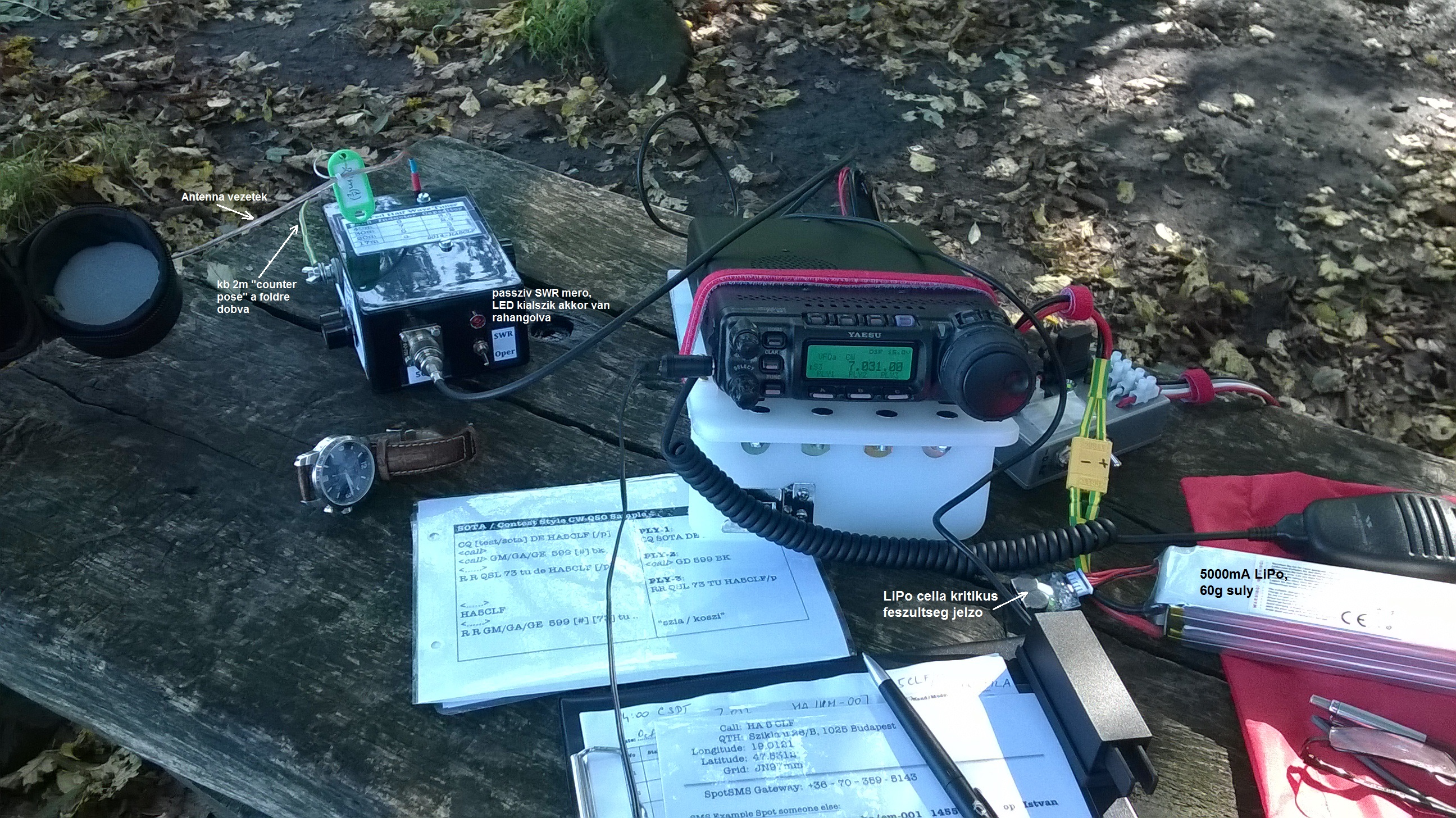 - Yeasu FT-857, általában 20W-ra állítva, így kibír egy-két órát